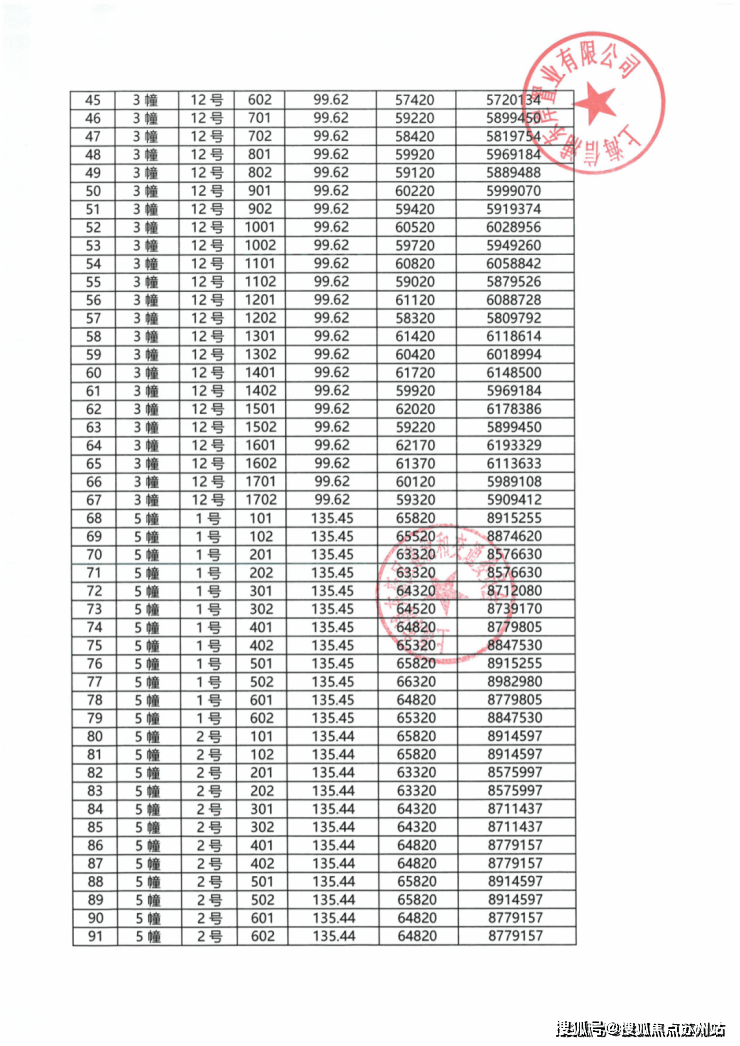 项目一房一价表▼