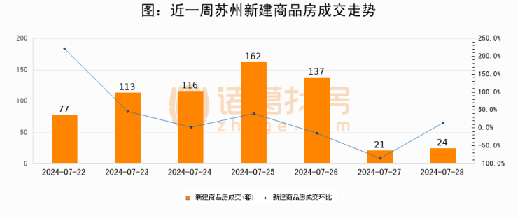 【苏州成交日报】07月28日新房成交24套、二手房15套;涨价房源215套