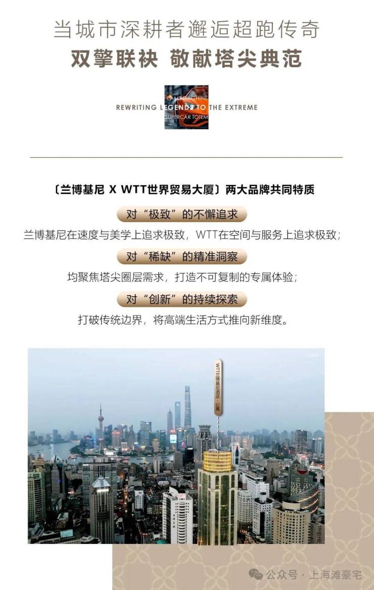 ▸WTT兰博基尼酒店·公寓售楼处地址:上海市黄浦区广东路500号(看房请提前预约)