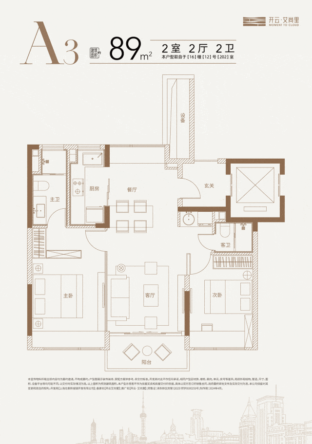 建面约89㎡户型创新性引入独立电梯厅的体验,每户均享有一段独立、私密的电梯前厅空间,面积可达约3㎡.与市场热议的新规产品惊人相似,在有限空间内实现了功能更大化.