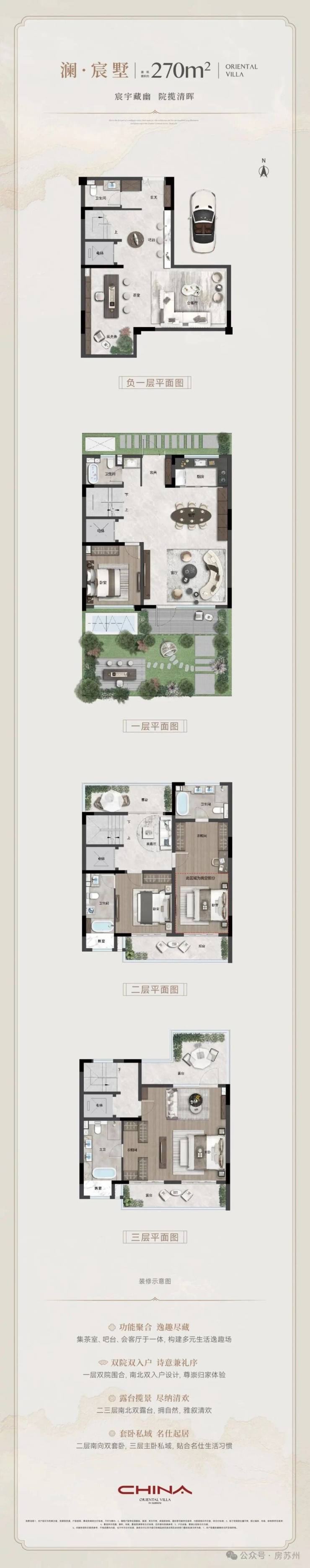 产品面积:联排建筑面积约270㎡-300㎡