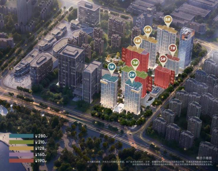该方案亮点颇多,总计八幢高层和小高层设计,最南端的1#和2#楼均设置有私家泳池,而且还在19F采用了住宅楼当中较为少见的悬挑工艺,延伸出了一定的使用空间,个人预估这两幢会是配置大平层豪宅产品。