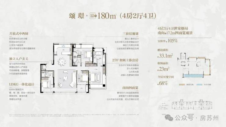 单层大平层化:最大约10.2米南向面宽,约6.8米宽厅,单层面积轻松过百,空间开阔从容