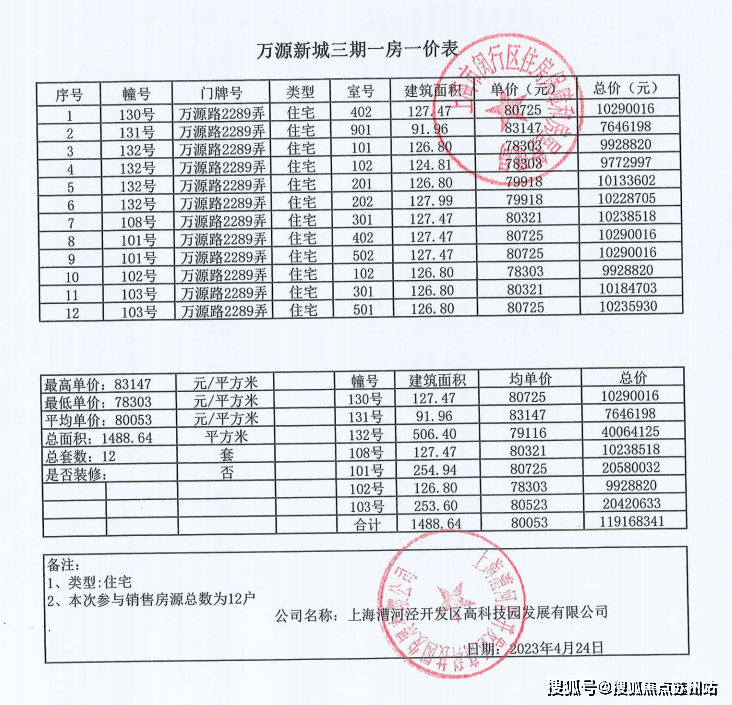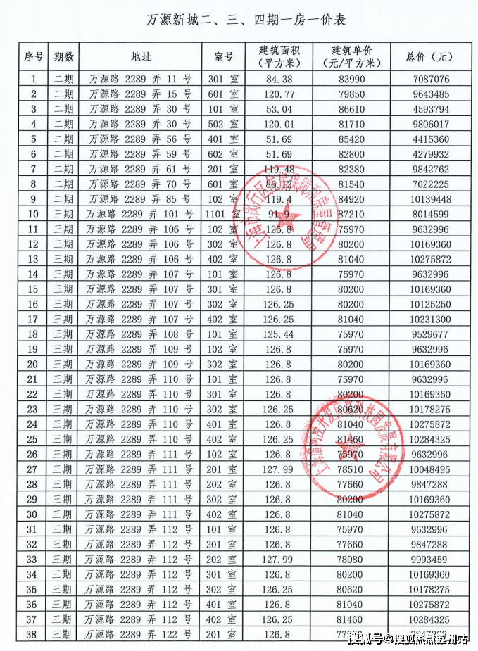 一房一价表如下: