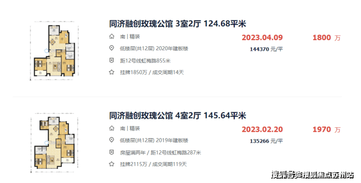 漕河泾已给出答案,同济融创玫瑰公馆二手房已有13、14万+/㎡房源成交: