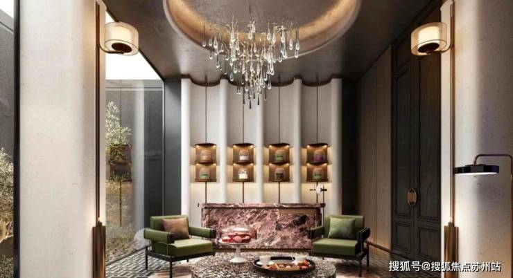 项目将打造 2600㎡的下沉式高端会所,会所和室内空间还将采用很多奢石,例如 粉水晶、雪山兰、银河金、翡翠星空,同时涵盖私宴厅、恒温泳池、健身中心、行政酒廊、红酒雪茄吧等空间,往来皆人物,满足高阶圈层人群尊贵感和仪式感。