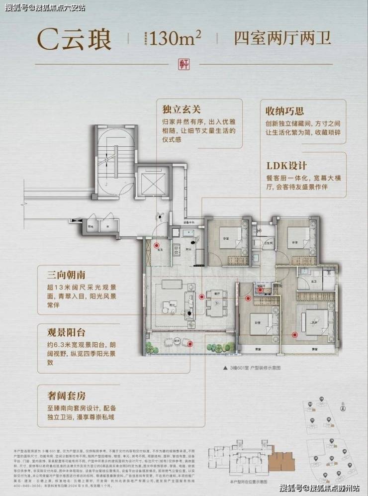 - **130㎡四房**:13米南向面宽+6.3米横厅,独立玄关+走廊储藏间,媲美180㎡空间感。