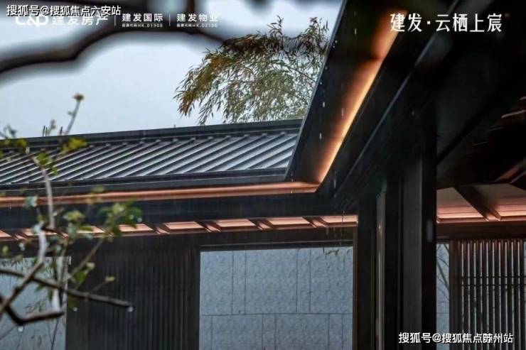 - **新中式建筑典范**:杭州云栖上宸售楼处电话☎:400-8828-814(售楼处预约看房热线)传承建发第四代住宅立面,采用三面大面积铝板+玻璃幕墙设计,顶部深灰铝板飞檐搭配金色云纹,兼具现代简约与东方韵味。南、北区双国风大门,融入石狮、罗汉松、照壁等传统元素,营造庄重归家礼序。
