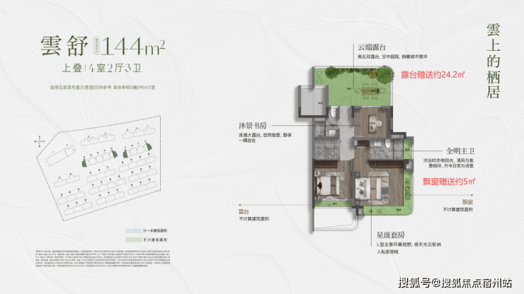 约144㎡上叠,入户独立梯厅,带来更好的功能利用和私密性.