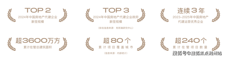 2024年,荣获中国房地产代建企业新增规模排行榜TOP2、中国房地产代建企业政府新签规模TOP3、累计项目覆盖城市超80个,累计在管项目数量超240个,累计在管项目总建筑面积超3600万方。