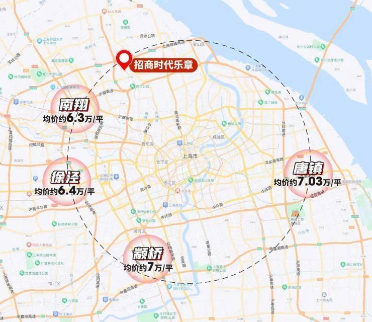 与招商时代乐章同纬度的板块,大多均已突破6万+,像唐镇、颛桥等成熟的置业地,价格甚至突破了7万大关。