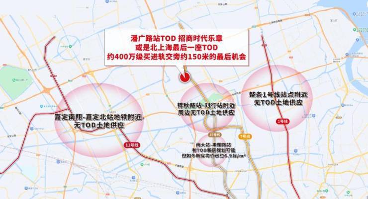纵观整个北上海的所有400-600万级置业地的轨交站点,还有条件建造TOD、建造直线约150米进站轨交盘的土地,寥寥无几甚至不会再有。