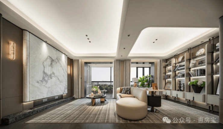 入口一楼迎宾访客会所,打造酒店大堂式高定场景,为宾客提供尊崇的迎宾与洽谈空间。约1800㎡下沉式全维奢享会所,规模和功能媲美市中心豪宅,不仅仅配备行政酒廊、私宴厅、茶室、健身房、瑜伽室、恒温泳池、儿童乐园等空间,更计划引入主理人制度打造高端体验,满足高阶业主的生活需求!精妙之处在于,下沉会所采用围合式布局,健身房、瑜伽室等空间得以直面美景。还有约2000㎡全景架空层会所,则化身邻里互动的温馨场所,融入四点半学堂、长者茶室、共享办公等多元功能,满足全龄段生活需求。