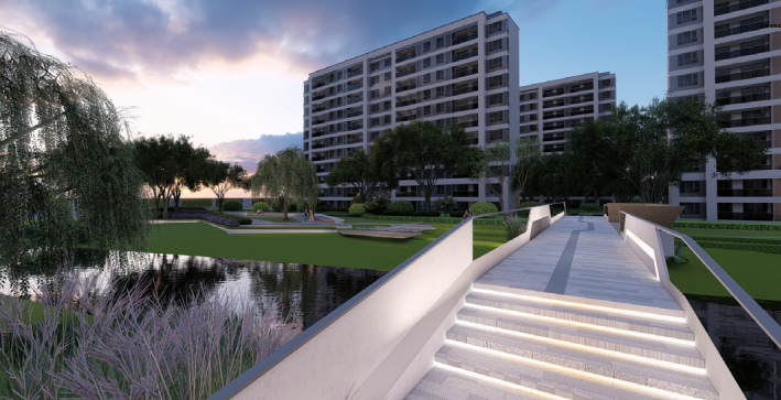 最为难得是社区内部拥有自然水系,打造了两岸水景景观,在社区内部也能拥有“小桥流水人家”的居住体验,这种意趣在板块内仅此一家!