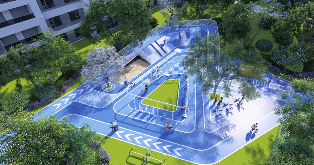 活动上,社区内部设计有羽毛球场、乒乓球场、科学跑步道,还有各年龄段的活动区,社区既是游乐场又是运动场,无论孩子还是老人都能有自己的专属空间。