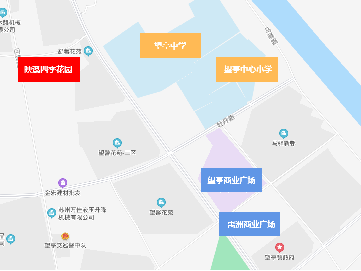 商业上,项目周边基本聚齐了板块内的大型商体,500米范围内就有丽都生活广场、望亭商业广场,而且望亭较大的商业综合体——总建约1.6万㎡禹洲商业广场距离项目也就是步行数分钟的距离。