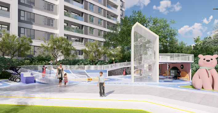 尤其是,项目特意为孩子打造了一个主题性的“童心树院”,针对不同年龄段的孩子设置不同的场所,有涂鸦绘画墙、树林攀岩、欢乐跑道……