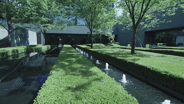 与连廊衔接的地下会所同为SCDA作品,延续了整体布局秩序与平衡,通过中庭花园和超白玻璃的大量使用,将自然光引入地下,使整个会所显得更加开阔和明亮,当然,这席高定艺术会所仅向小区业主开放~