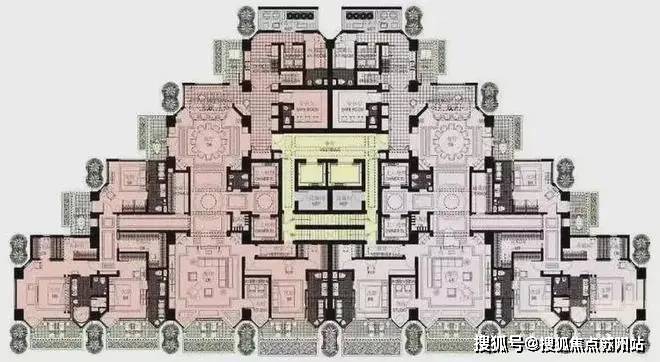 项目分三期开发,2号楼户型分布为一层4户,中间两套为348平米边套为680平米复式,总楼层39层,有两层为避难层,避难层会改造成绿化休闲区。