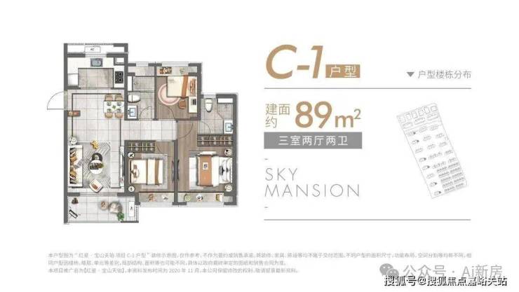 除了建面约89㎡的洋房,建面约83~89㎡高层户型也各有所长,均是三房设计,无论是从结构布局,还是空间利用皆相得益彰,承载一家人的美好生活。高层户型如下: