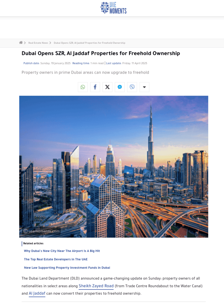 人口爆炸式成长:迪拜人口成长与房市息息相关。如果这里的人多到没地方住,房市就不会崩盘。仅 2025 年,迪拜就新增了超过 200,000 名常住居民。政府目标是 2040 年达到 580 万人口。这些人需要住房。