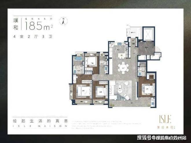 璞和 | 建筑面积约185㎡四室两厅三卫户型