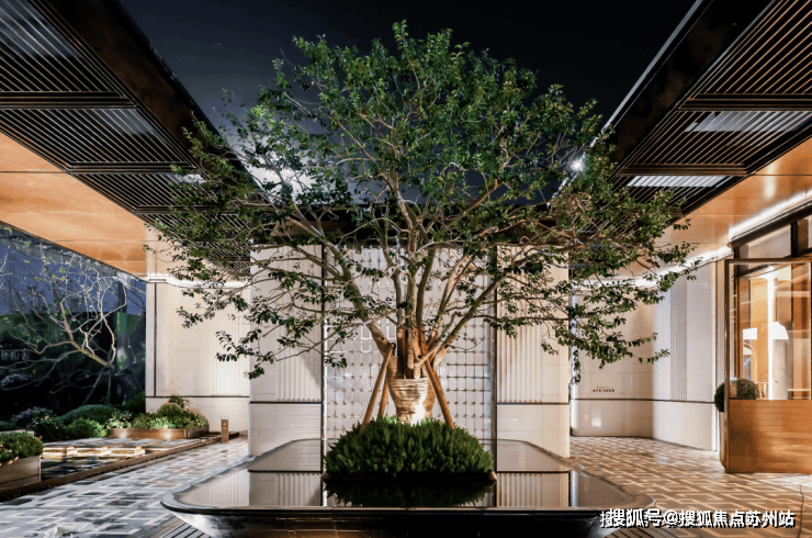 社区大堂门口,还全冠移植了树龄超60年的铁冬青,缔造林下空间!