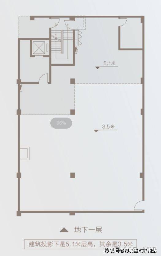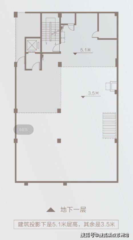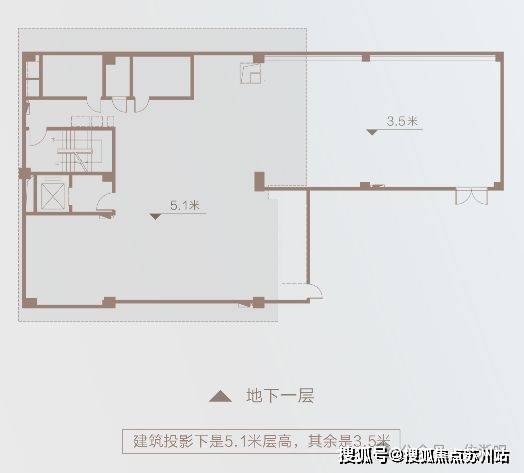 地下社交:层高约5.1m、局部约3.5m,可作企业康养乐活空间