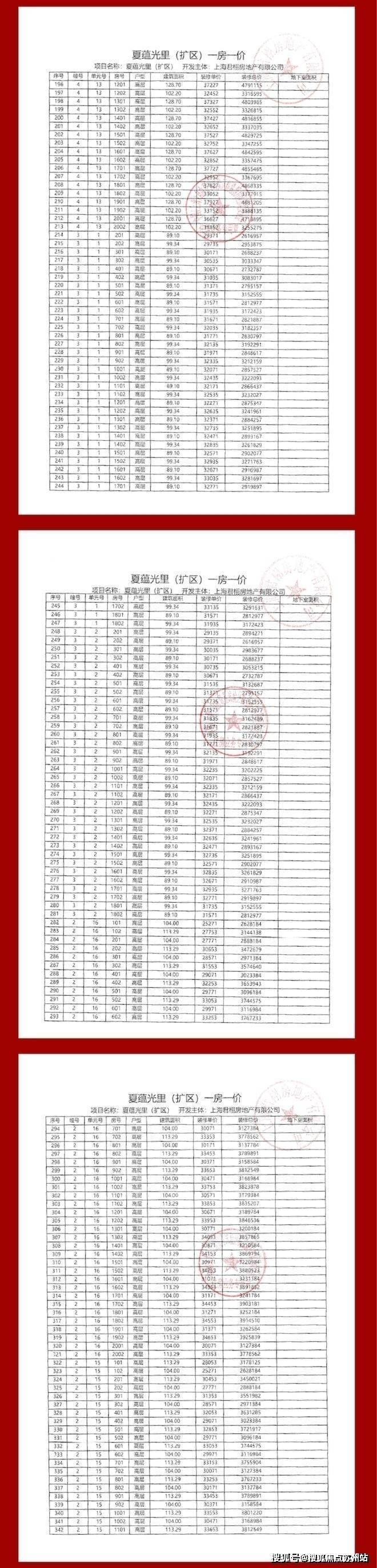 项目一房一价表
