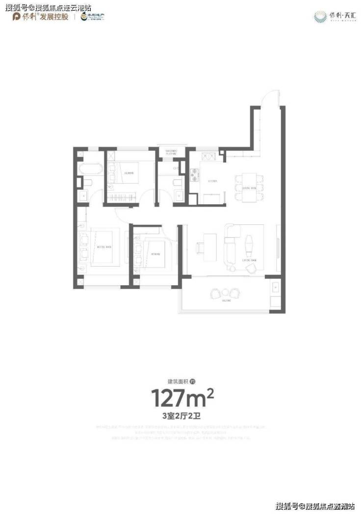 高层为26F,中间户建面约109㎡,边户建面约127㎡。