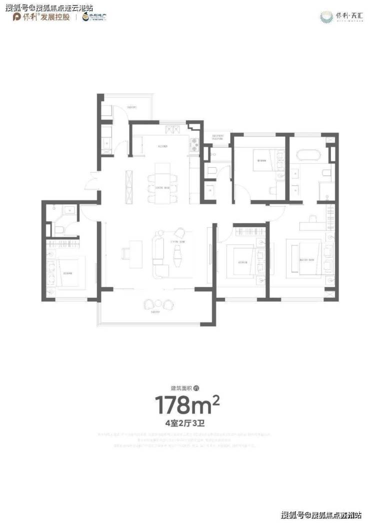 其中洋房层高8-10F,售楼处;400-8228-664 有两种户型,建面约140㎡和178㎡;