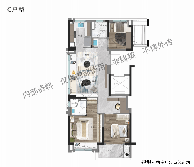【建筑面积约95㎡C户型 三室两厅两卫】