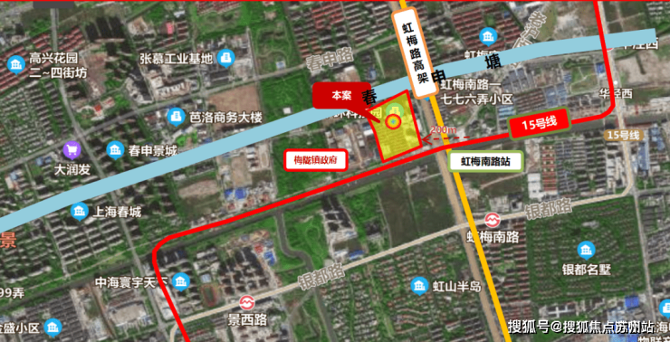 围绕15号线虹梅南路站,以TOD理念打造功能无缝衔接的综合枢纽,沿景洪路两侧打造约120米城市高地,沿春申塘打造滨水地标,优化基础教育和公共服务布局。