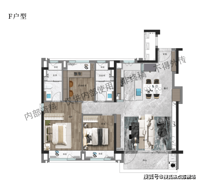 【建筑面积约121㎡F户型 3+1室两厅两卫】
