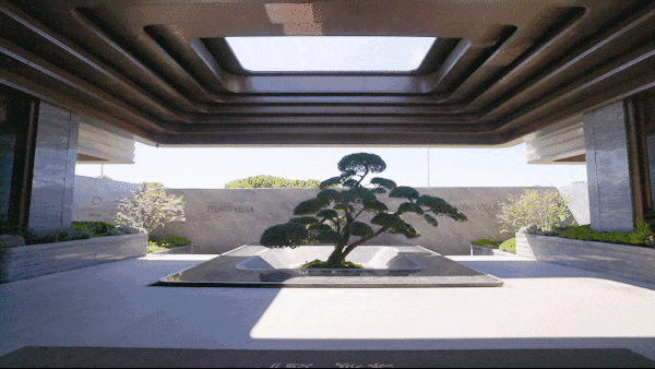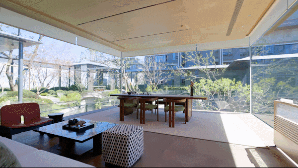 沿风雨连廊漫步,耳畔是流水淙淙,眼前是叠石苍松。约460㎡下沉庭院不像景观,更像一幅您就在其中的立体宋画,一草一木,都可触摸、可对话。