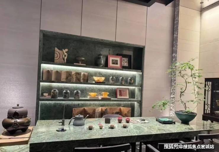 材料选用意大利石材,BVLGARI HOTEL大理石,铝型材塑型红,四层金属网格墙面以及梧桐叶金属屏风等,打造独属老静安的记忆符号,高奢定制,市区豪宅调性拿捏!