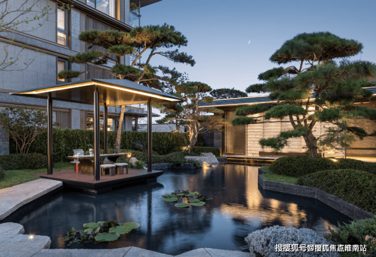 再往里走就是近 460㎡ 的下沉式庭院,精选太行山金景石堆叠成小山丘,引进溪水汇聚成池塘,并移栽岭南珍贵的古桩铁冬青和中华原生乌桕树,形成一幅立体山水画卷。 绿城逸庐售楼处电话:400-8673-567