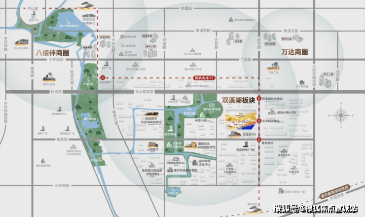 城市绿肺:项目周边规划双溪湖公园和城市水岸公园,且近邻占地约3300亩的嘉兴中央公园,三公园之上,悅享自然盛宴。