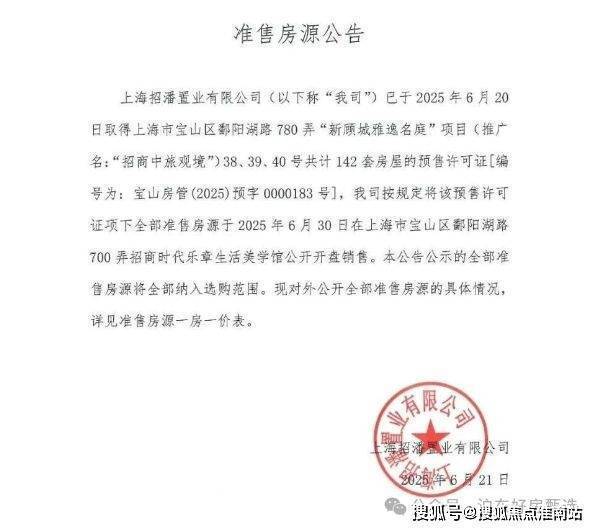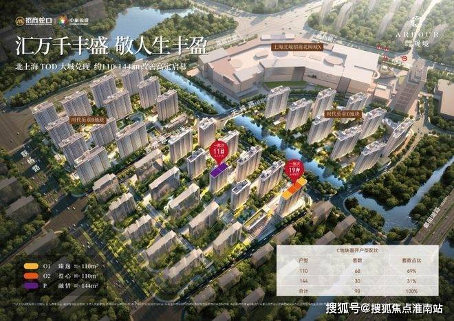 2024年7月9日,招商蛇口&中旅投资拿下宝山顾村7号线潘广路站旁地块.目前,项目定名为招商中旅·观境,主力户型为建面约110㎡3房和约144㎡4房.