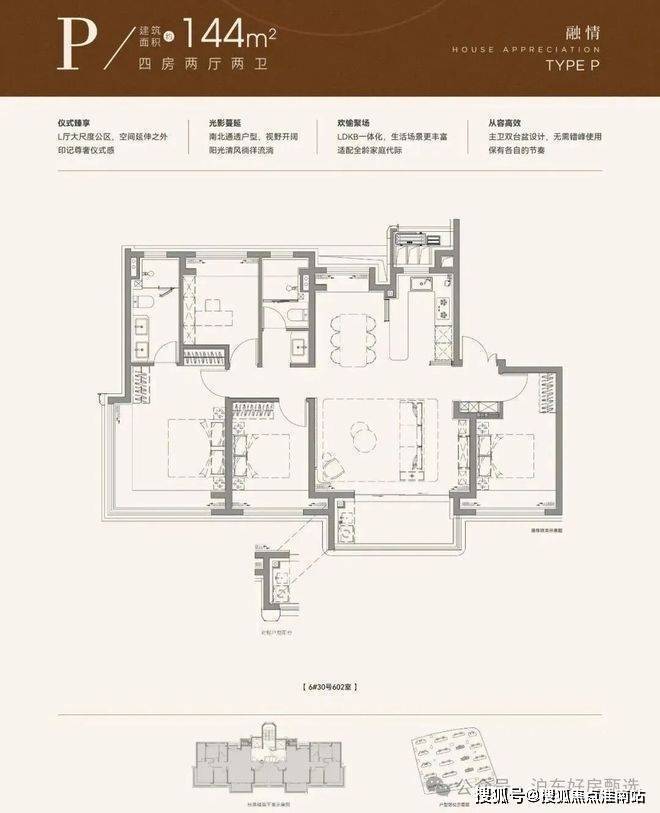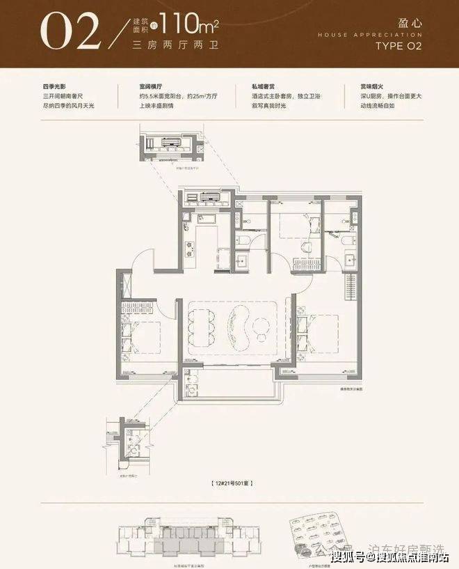2、镜⾯美学:⼤窗墙⽐,打造宽屏⽴⾯:社区上,项目享四重酒店式归家