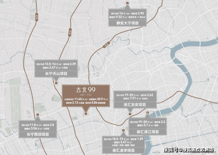 徐汇滨江地王均价19.5万,静安大宁放风价16万+,长宁北新泾项目预期售价14万/㎡;紧贴外环的长宁程家桥项目联动价11.8万/㎡……而古北99位置距离内环步行约1.3公里、均价11.65万/㎡显得尤为珍贵。这种倒挂幅度,堪比2016年的前滩、2018年的新天地,都是时代给予的置业红利。