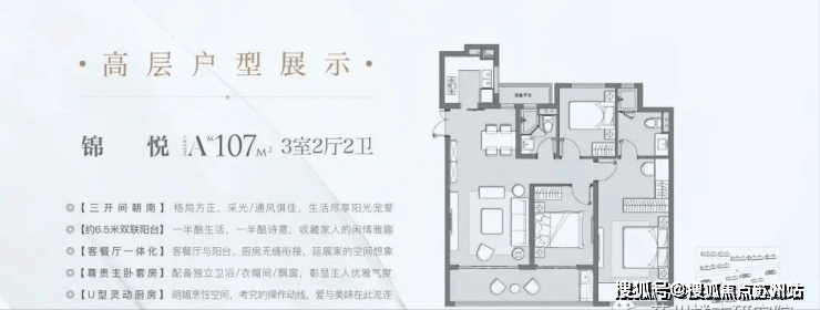 锦悦 高层 107㎡ 户型:三室两厅两卫