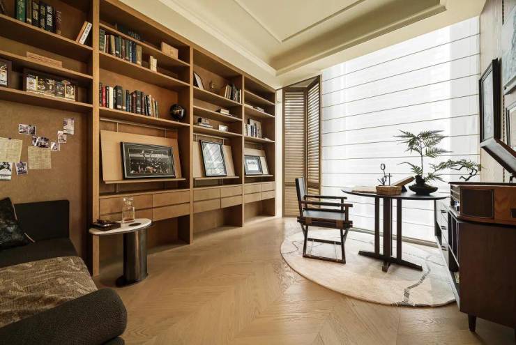 要想品质生活,一个可以用来安心阅读或释放天性爱好的空间必不可少!在左岸中心质奢新所的打造下:整面墙的陈列架、舒适的手扶椅、简约的边桌,光线正好,舒适且放松!