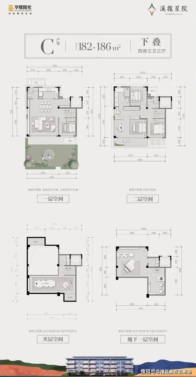 华夏溪揽星院售楼处电话☎:400-882-8814(预约热线)✔✔✔项目别墅面积从142平方米至186平方米不等,总价区间为380至600w左右,均为精装修交付。上叠别墅附赠空中花园,为居住者提供额外的户外休闲空间;下叠别墅则配备5.4米层高的地下室及私人花园,增强了居住的私密性与舒适度。