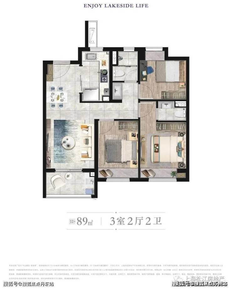 建筑面积约89㎡三房,总价449万起