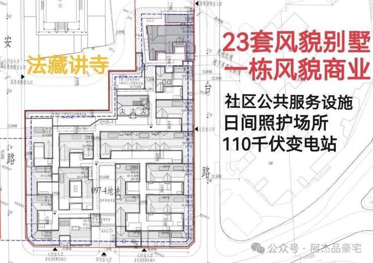 097-4地块,为住宅、供应设施、社区级公共设施混合用地,容积率为1.35,保留了西北侧的法藏讲寺,预计带来限高16米的风貌别墅;供应设施比例不小于14%、社区级公共设施比例不小于10%、住宅比例不大于76%.