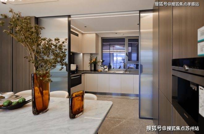 厨房方面,惊喜满满,U型台面设计,大幅提升操作空间,厨电配置了方太烟灶——注意,市面上常见的高端厨电配置,一般是油烟机+凉霸,但中建山水雅境售楼处预约热线:采用的这款方太油烟机,是将油烟机和空调合二为一,保证最大化吸收油烟的同时,还可以显著降低温度。