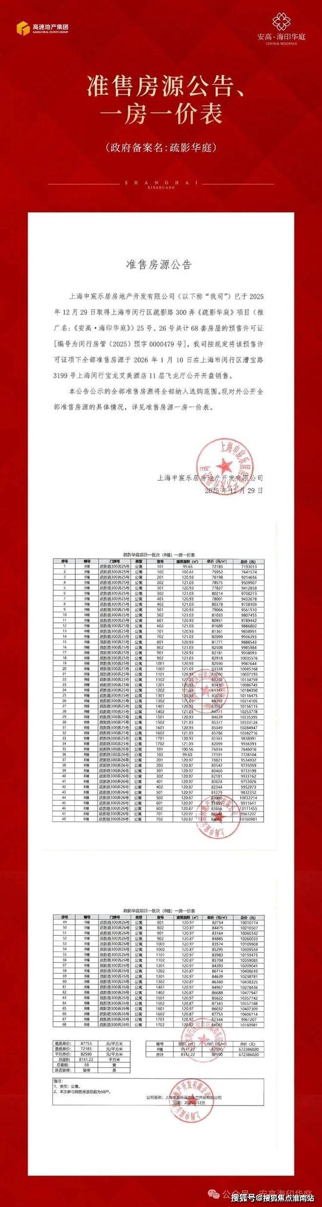 莘庄“地王”!「安高·海印华庭」首推68套约100-120㎡3房;均价82590元/㎡!