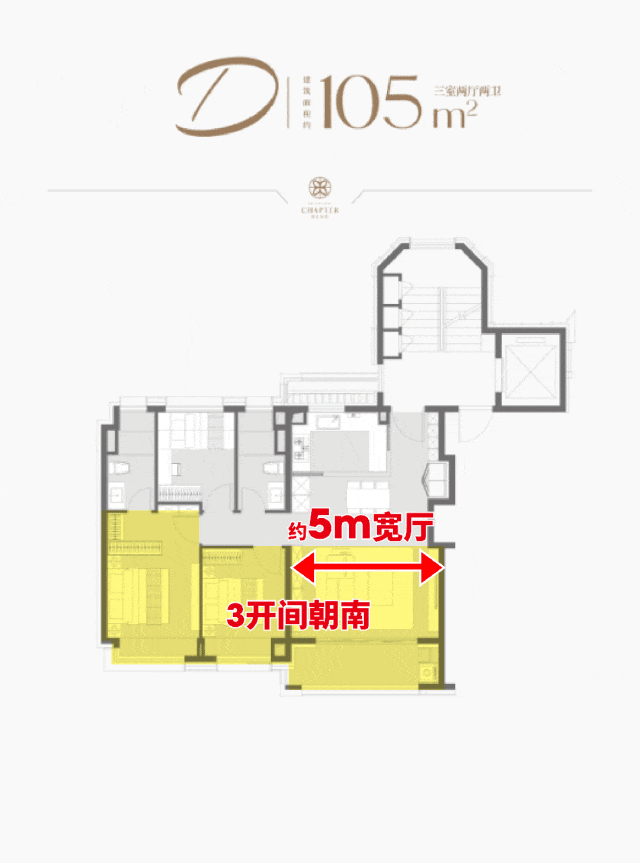 建面约105㎡3房好评如潮, 拥有超级方厅设计+超高配置+6飘窗收纳等多个特点。▶同级无敌客餐厅,尺度&功能性双顶格!