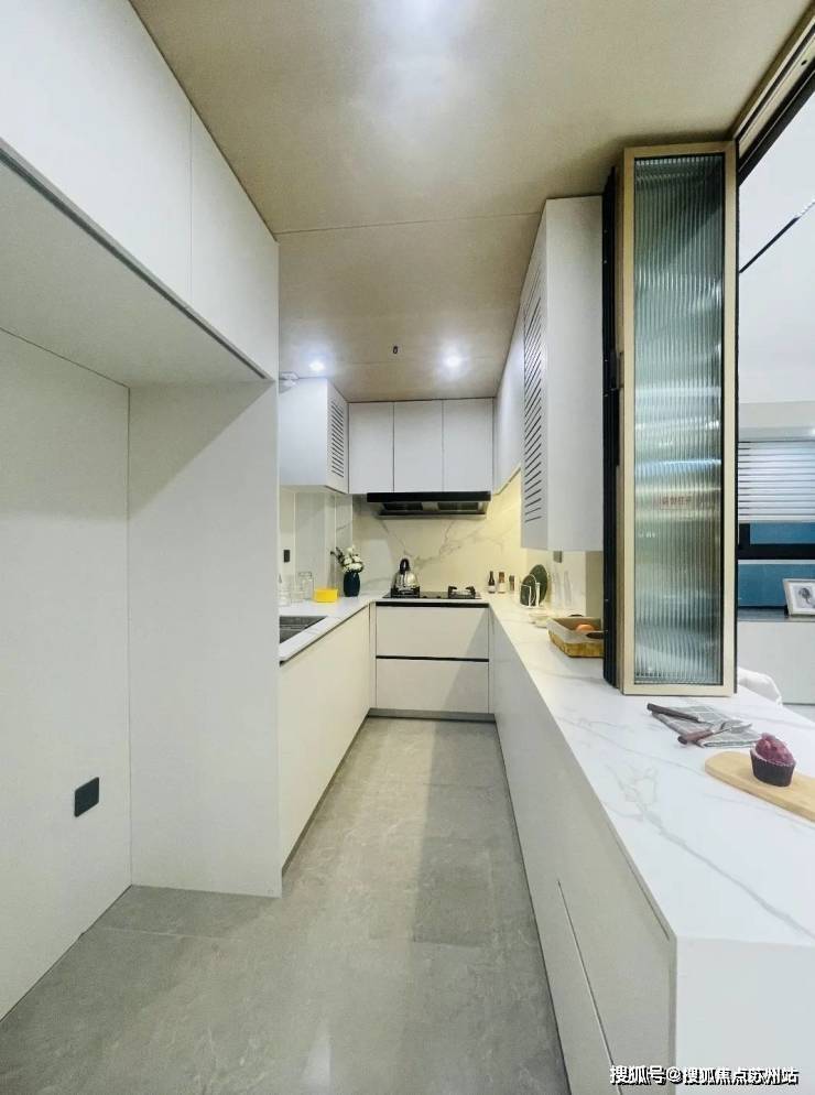 采用细石混凝土整浇抛光,并在表面涂有防滑环氧涂料,搭配白灰相间条纹,明朗宽阔,顶部配灯带,既保证了业主的安全驾驶,又让归家充满仪式感,呈现出高级与秩序之美